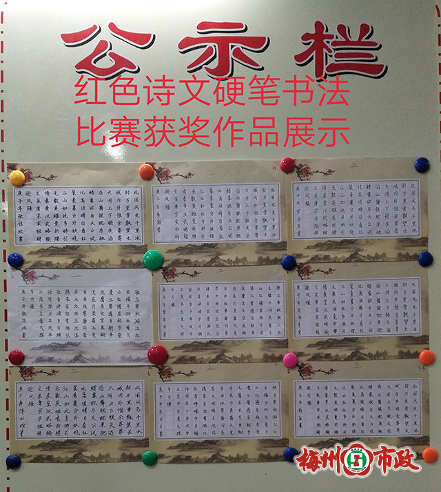 比賽期間,參賽選手滿懷激情,全神貫注投入到自己的作品中,用心書寫著每一個漢字,作品或委婉流暢、或娟秀端莊、或剛健遒勁、或賞心悅目。本次比賽從書寫規(guī)范、字跡工整、整體效果等三個方面進行評價,本著公正、公平、公開的原則,誠摯邀請了三位專業(yè)評委進行現(xiàn)場評選,通過緊張激烈的角逐,評委的認真評選,最終評選出一等獎兩名,二等獎三名,三等獎四名。賽后獲獎作品在公示欄里進行了展示。