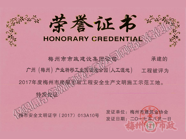 - 熱烈祝賀廣州(梅州)產(chǎn)業(yè)轉(zhuǎn)移工業(yè)園濕地公園工程獲評“梅州市房屋市政工程安全生產(chǎn)文明施工示范工地”