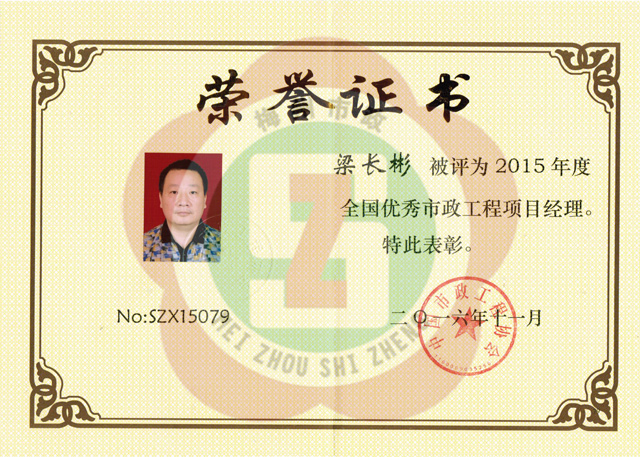 - 集團(tuán)公司梁長彬同志榮獲“2015年度全國優(yōu)秀市政工程項(xiàng)目經(jīng)理”稱號