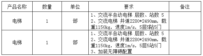 (二)招標內容:電梯設備采購兩臺具體詳見下表;